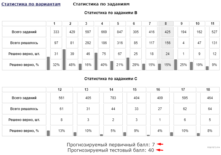 Тестовые баллы отображаются, только если вариант полностью аналогичен экзаменационному.