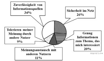 38.2. Stellen Sie sich vor, dass Sie an einem Projekt zum Thema „Was den Einwohnern von Zetland am wichtigsten ist, wenn sie Nachrichten in sozialen Netzwerken lesen“ arbeiten. Sie haben einige Informationen zu diesem Thema gefunden, und zwar Ergebnisse einer Umfrage, an der Einwohner Zetlands teilgenommen haben (siehe Kreisdiagramm unten).