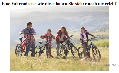 Sie haben beschlossen, an dieser Fahrradreise teilzunehmen. Sie möchten aber gern mehr darüber wissen. Überlegen Sie innerhalb von 1,5 Minuten fünf direkte Fragen zu folgenden Stichpunkten: