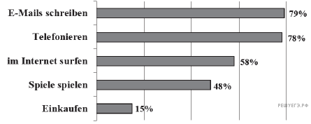 38.2. Stellen Sie sich vor, dass Sie an einem Projekt zum Thema „Mit welchem Ziel die Menschen ihre Smartphones nutzen“ arbeiten. Sie haben einige Informationen, und zwar Ergebnisse einer Umfrage, zu diesem Thema gefunden (Sehen Sie die Grafik unten).